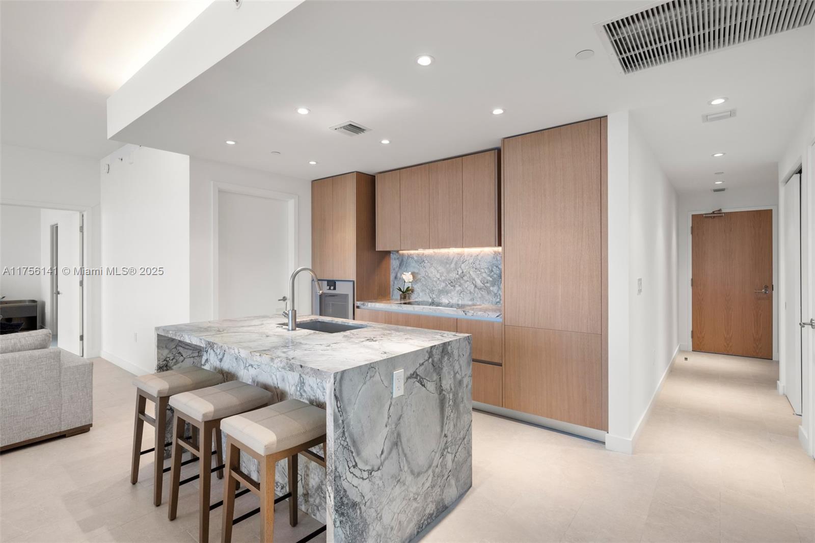 Never lived in, designer-furnished 2 bed, 2.5 bath with oversized balcony at Five Park Miami Beach. Split floorplan, large living room with 10-ft ceilings and floor to ceiling windows. Custom kitchen features Gaggenau appliances, Italian oak cabinetry and quartzite countertops. Marble primary bathroom. Five Park is a full service luxury building that will offer its residents extensive amenities including two pools with views of the Bay, a restaurant, bar & lounge on the pool deck, wellness & fitness areas, and a spa, as well as access to a private beach club. Other amenities include co-working studio with private offices, screening room, children's play area & teen lounge. Additional floorplans available.