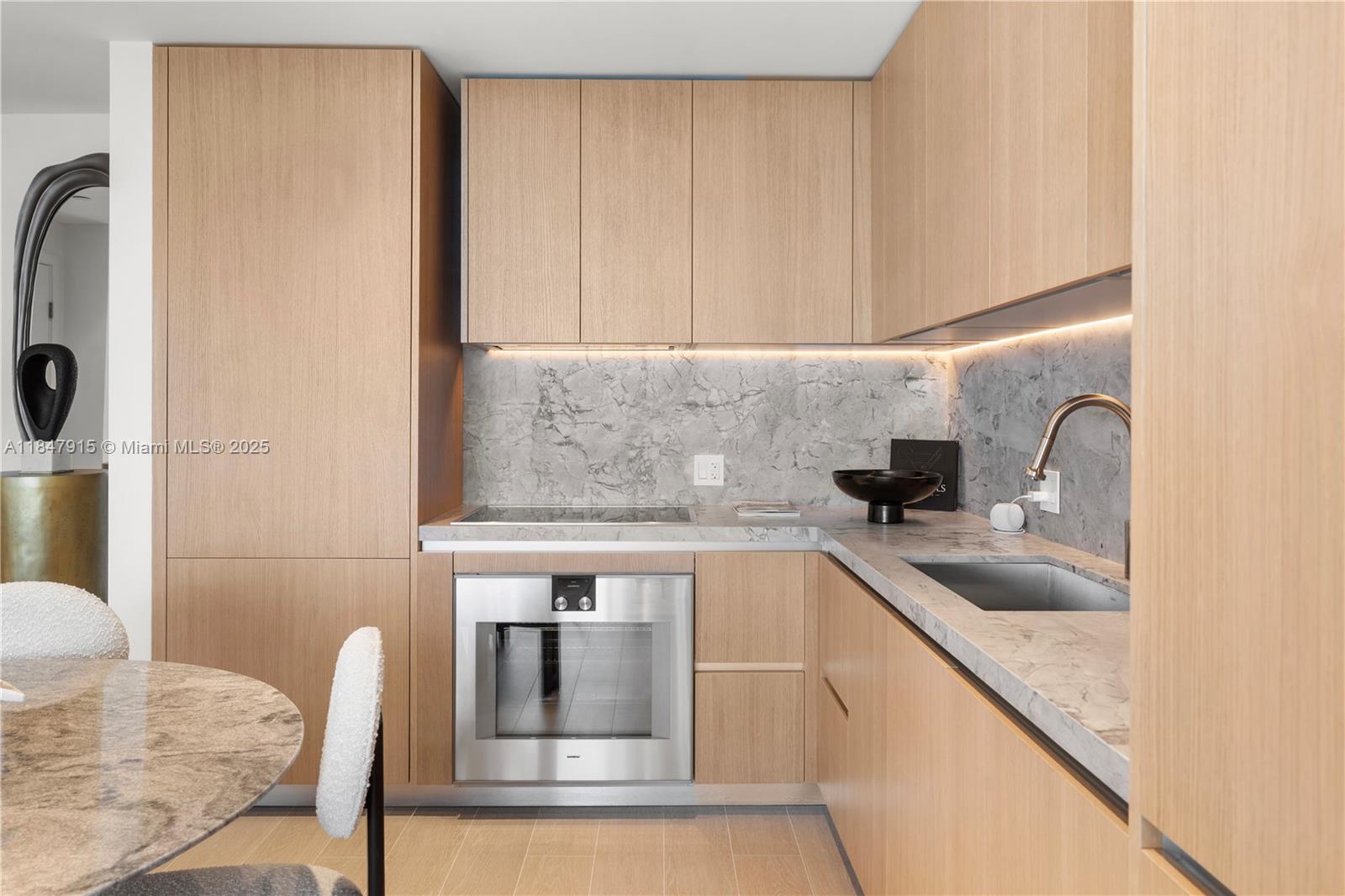 This elegantly designed 1 bed 1.5 bath residence at Five Park offers a refined blend of comfort, style, and functionality. Enjoy the sweeping views of the Atlantic Ocean and vibrant South Beach from the oversized terrace. Floor-to-ceiling windows, 10 ft ceilings and an open-concept layout enhance the sense of space. The gourmet kitchen features Gaggenau appliances, white oak cabinetry, and quartzite countertops. The primary bath features marble floors/ wall/ vanity top. Delivered November 2024, Five Park, the newest luxury landmark in Miami Beach, offers its residents an elevated lifestyle, including access to exclusive amenities, such as a Bay-facing full-service pool deck, a state of the art gym and wellness spa, and private beach club. Developer inventory, other units available.
